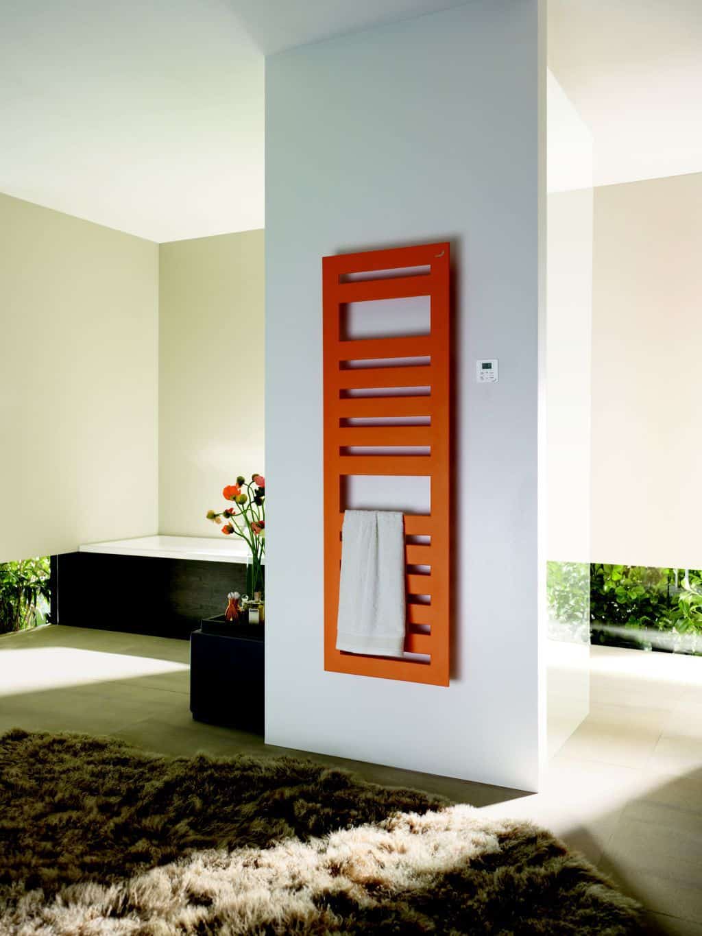 Elektrický koupelnový radiátor Zehnder Metropolitan Spa s dálkovým ovládáním, splňující evropskou směrnici EcoDesign: